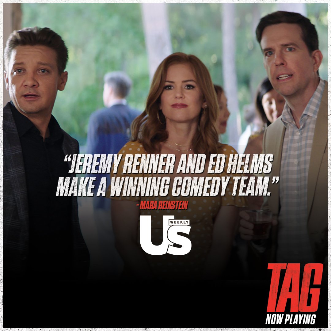 “Jeremy Renner and Ed Helms make a winning comedy team.” #TagMovie - now playing in theaters. Get tickets: http://Fandango.com/TagMovie pic.twitter.com/bLDQAWj1me