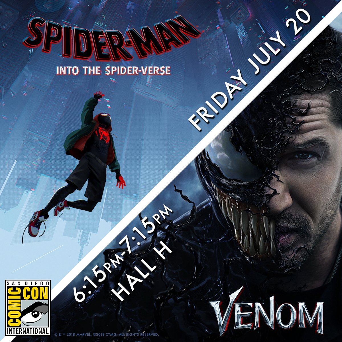 . @SonyPictures makes its way to #SDCC2018 with #Venom and Spider-Man: Into The #SpiderVerse – moderated by @JessicaChobot! @SpiderVerse @VenomMovie pic.twitter.com/tPiFIWjhZi