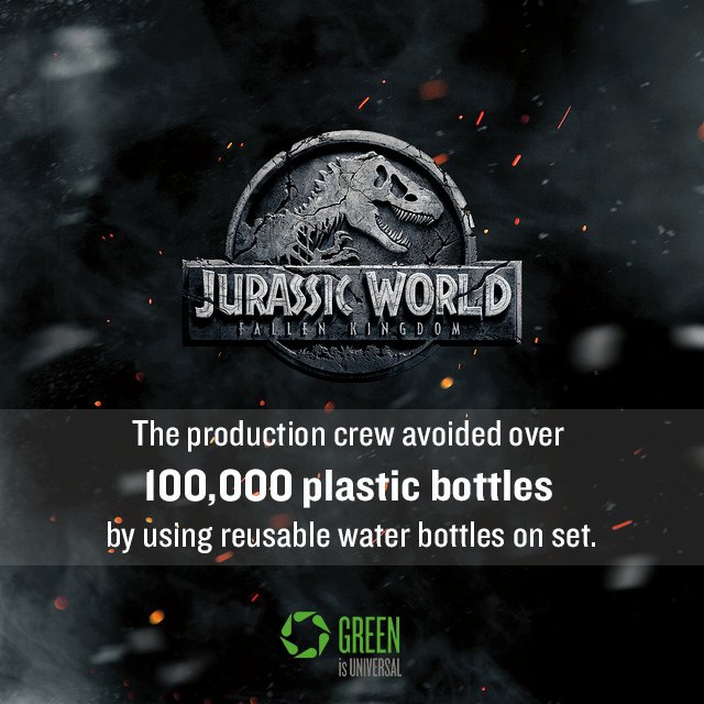 Who's excited for the Jurassic World: Fallen Kingdom premiere next week?? While filming, the crew used reusable water bottles which avoided the use of over 100k plastic bottles. Read more at http://GreenIsUniversal.com ! #GreenIsUniversal #JurassicWorld