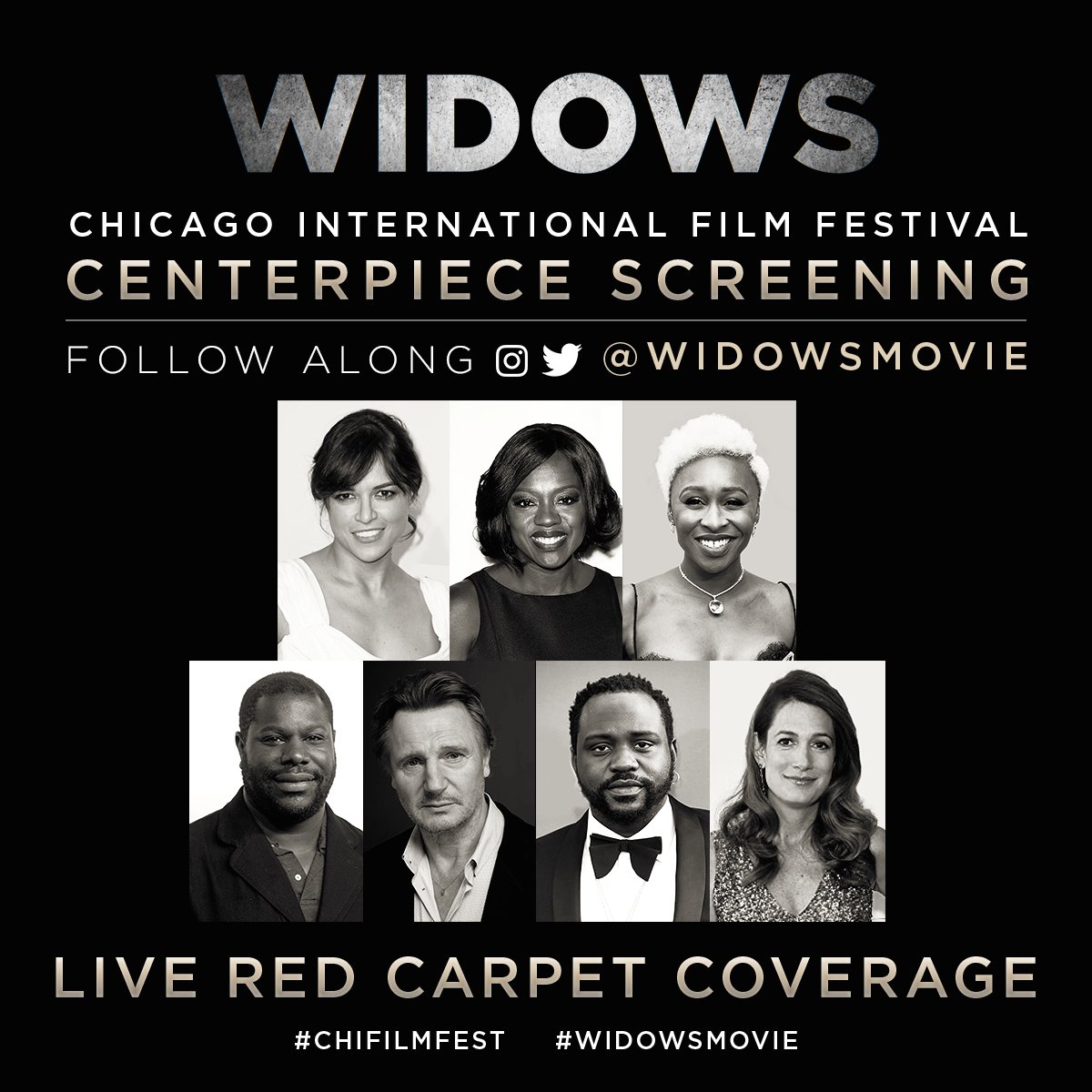 The cast and filmmakers of WIDOWS are headed to #ChiFilmFest! Follow along for LIVE updates from Chicago. #WidowsMovie pic.twitter.com/s5frZ1v1Yo