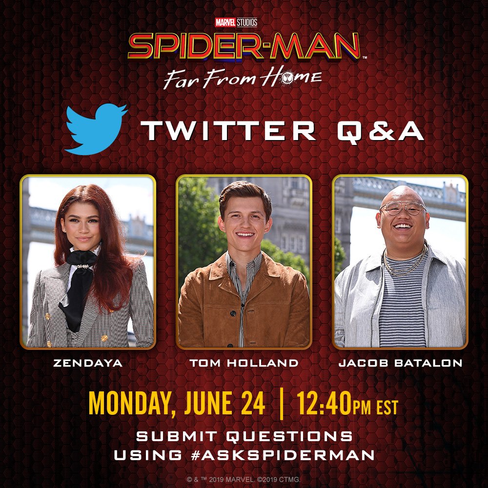 Submit your questions for Tom, @Zendaya, and Jacob now using #AskSpiderMan! pic.twitter.com/NkFidjx2Uq